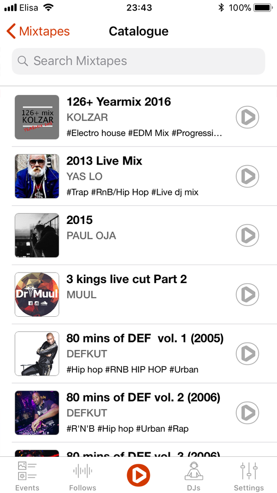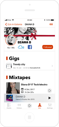 inROze combines upcoming gigs and released mixtapes/podcasts of local Deejays and present them in an easy to "follow" manner. You can then browse through the Deejays you follow and the mixtapes you added to your list. You can quickly decide to visit a venue where your favorite local Deejays are performing, and as easily listen to their latest mixtapes in your car, during a commute or your workout.