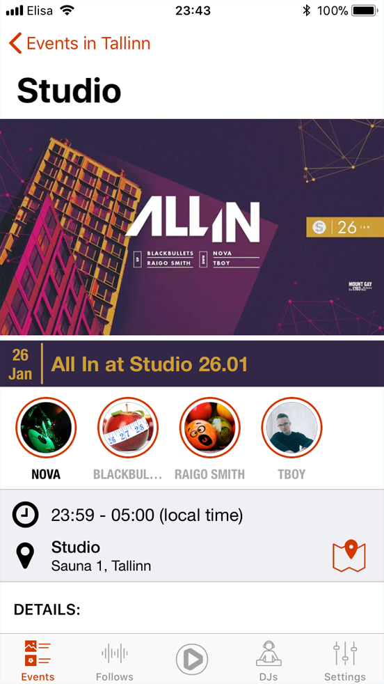 INROZE is primarily focused around “following your music”; venues are not the focal point. Only venues hosting events / happenings featuring DJs present in our database will appear in the App. We were not trying to re-invent the wheel (e.g. facebook events, pages, location)