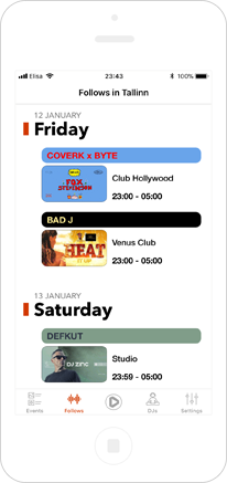 inROze is kept simple, especially since the concept is simple. You've experienced a DJ live and wish to catch him/her again, just add him as one of your "follows". All his/her gigs will be listed in the ‘follows’ section chronologically. You enjoyed a mixtape, podcast, live recording from your favorite Deejay, you can add it to your list, and so it is quickly available.